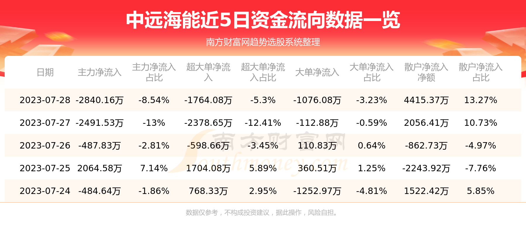 资金流向数据方面,7月11日主力资金净流流出5999.97万元,超大单资金净流入1681.25万元,大单资金净流出7681.22万元,散户资金净流入3592.04万元。