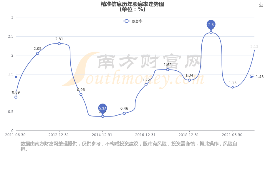 近年精准信息年度股息率走势如下图: