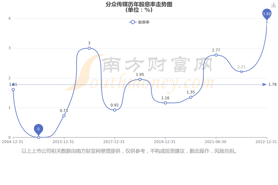 按照趋势选股系统统计,分众传媒所属行业为文化传媒行业,文化传媒行业分红排名情况如下表: