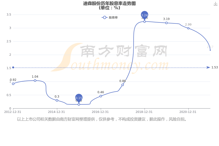 迪森股份最新一次公布的分红方案:10派1.2元。