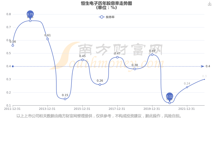 近年恒生电子年度股息率走势如下图: