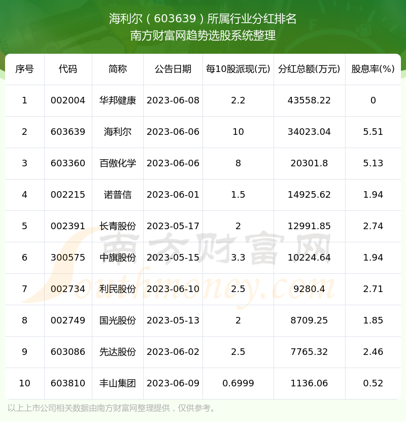 二、海利尔603639行业分红排名