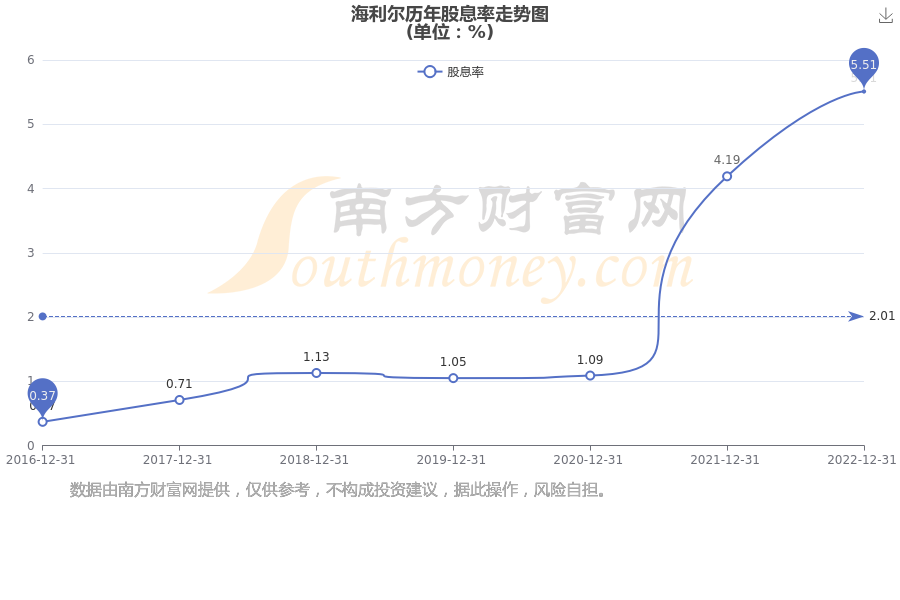 近年海利尔年度股息率走势如下图: