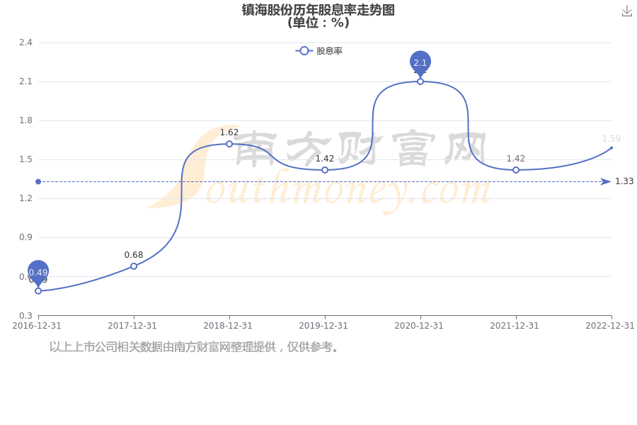 近年镇海股份年度股息率走势如下图: