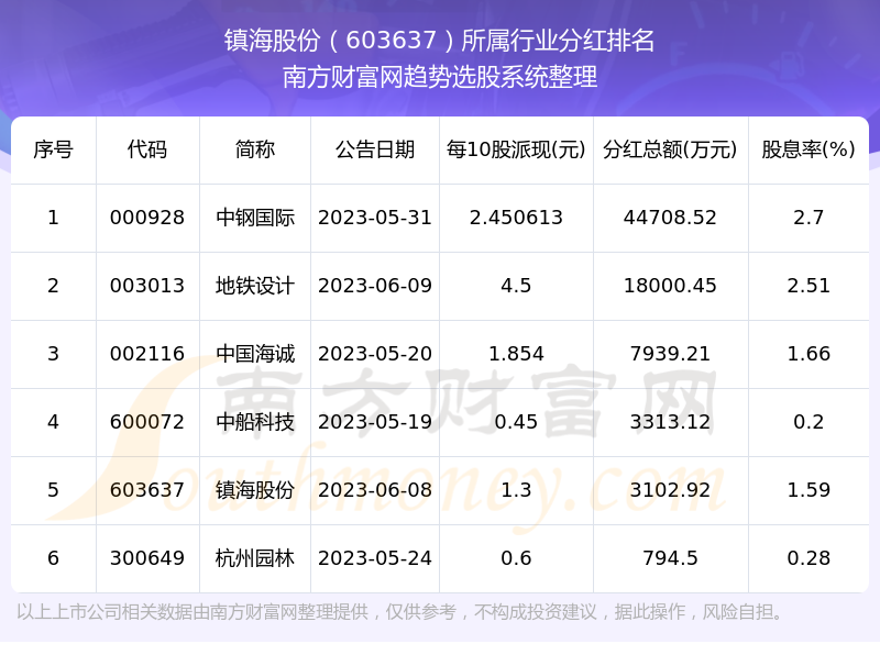 二、镇海股份603637行业分红排名