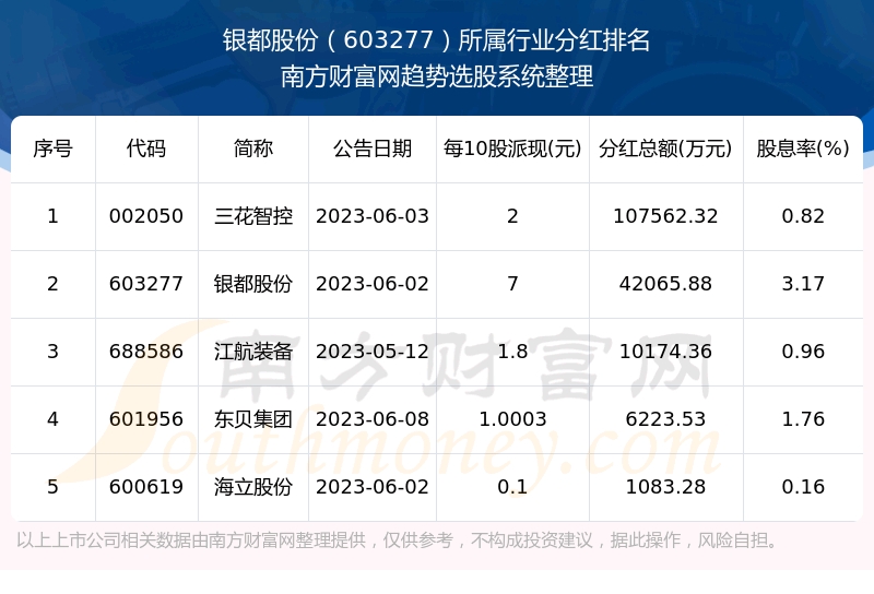 二、银都股份603277行业分红排名