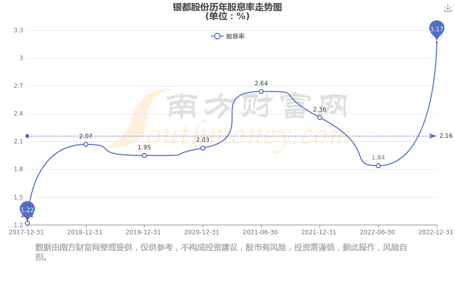 近年银都股份年度股息率走势如下图: