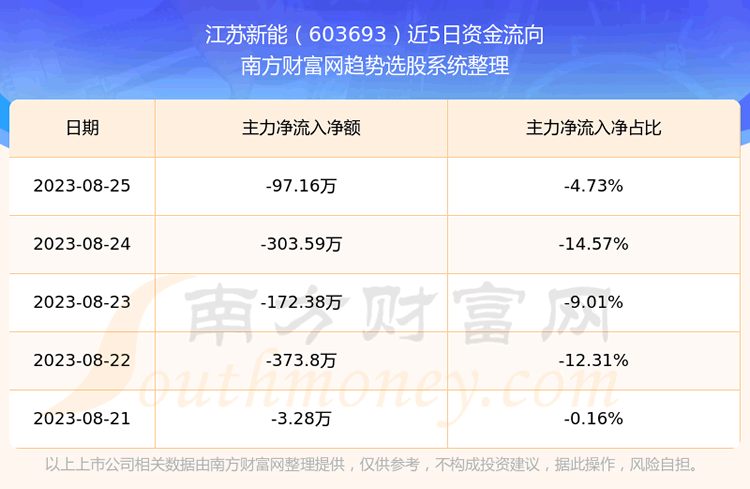 二、江苏新能(603693)近期盘面、资金面情况