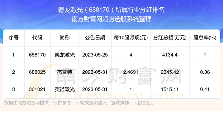 二、德龙激光688170行业分红排名