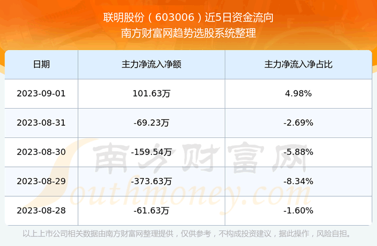 二、联明股份(603006)近期盘面、资金面情况