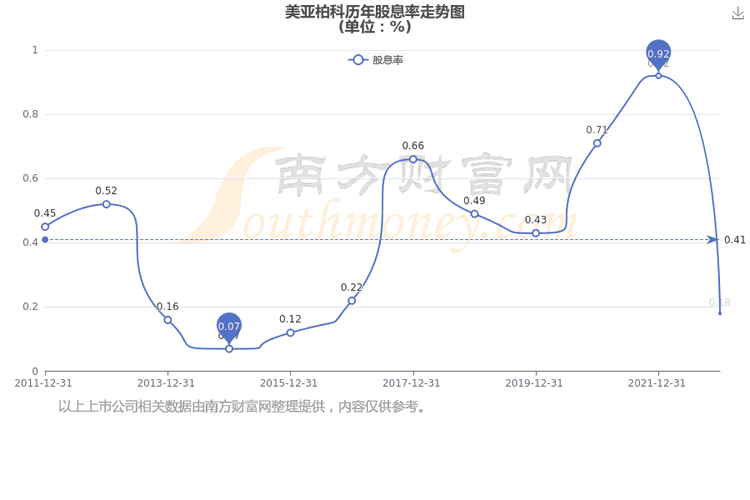 美亚柏科最新一次公布的分红方案:10派0.45元。