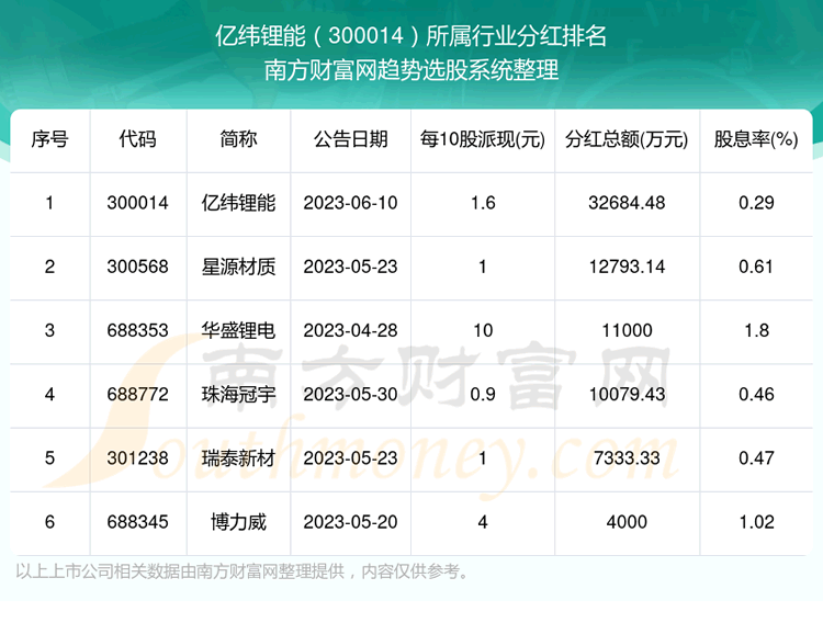 二、亿纬锂能300014行业分红排名