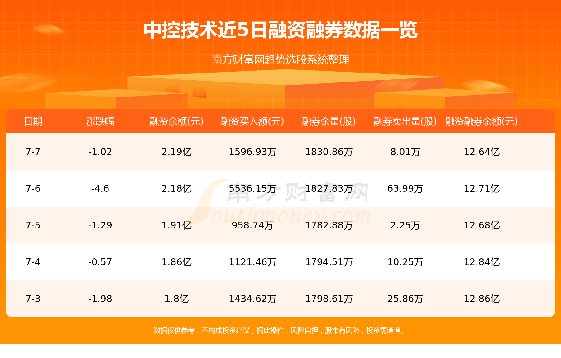 7月7日中控技术融券信息显示,融资方面,当日融资买入1596.93万元,融资偿还1443.65万元,融资净买额153.28万元。融券方面,融券卖出8.01万股,融券偿还4.98万股,融券余量1830.86万股,融券余额10.44亿元。融资融券余额12.64亿元。
