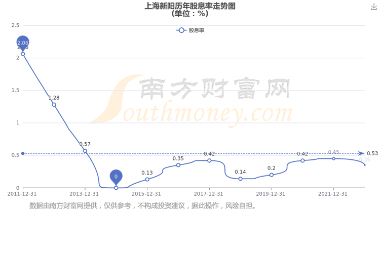 近年上海新阳年度股息率走势如下图: