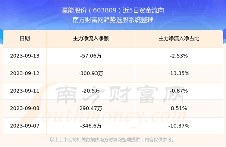 二、豪能股份(603809)近期盘面、资金面情况