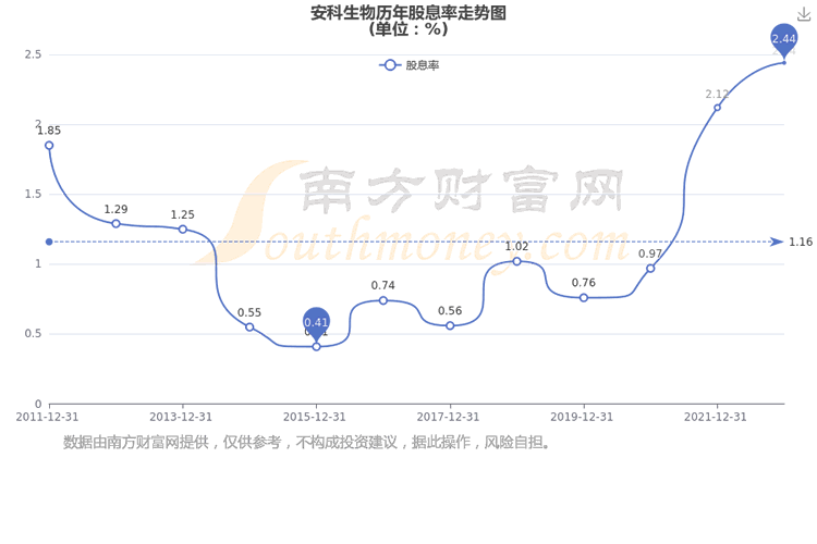 安科生物最新一次公布的分红方案为10派2.5元。本次权益分派股权登记日为2023年5月18日,除权除息日为2023年5月19日,派息日为2023年5月19日。