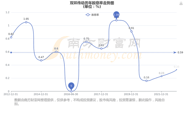 近年双环传动年度股息率走势如下图: