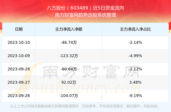 二、八方股份(603489)近期盘面、资金面情况