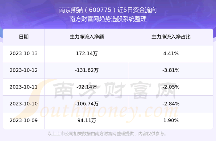 二、南京熊猫(600775)近期盘面、资金面情况