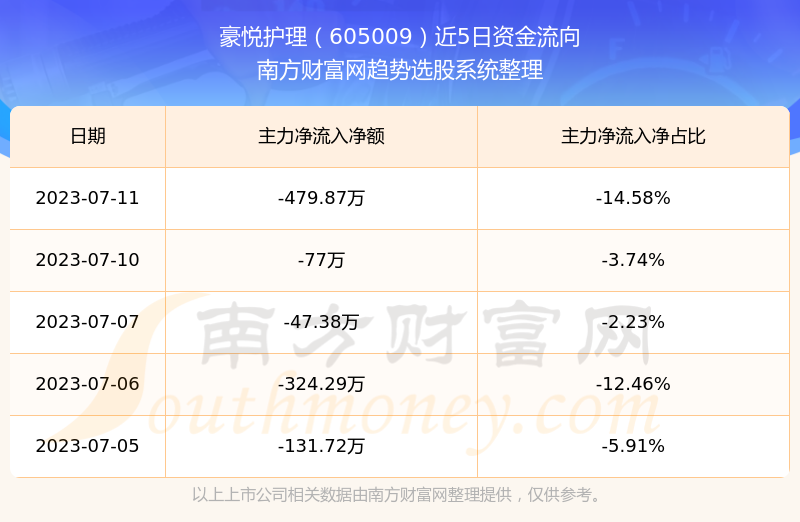 二、豪悦护理(605009)近期盘面、资金面情况