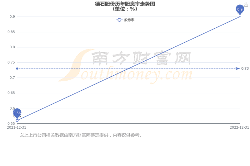 近年德石股份年度股息率走势如下图: