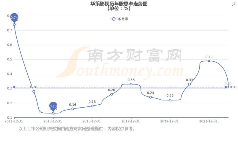 近年华策影视年度股息率走势如下图: