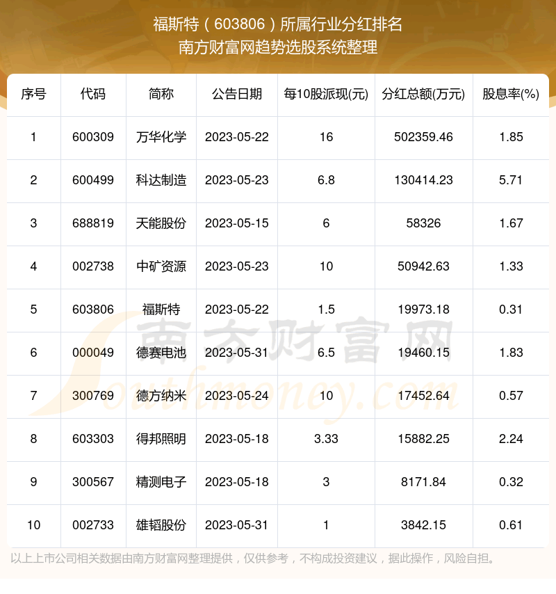 二、福斯特603806行业分红排名