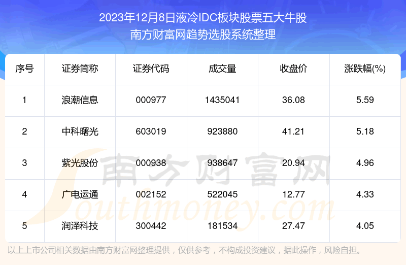 数据解盘|液冷IDC板块股票五大牛股名单 |
