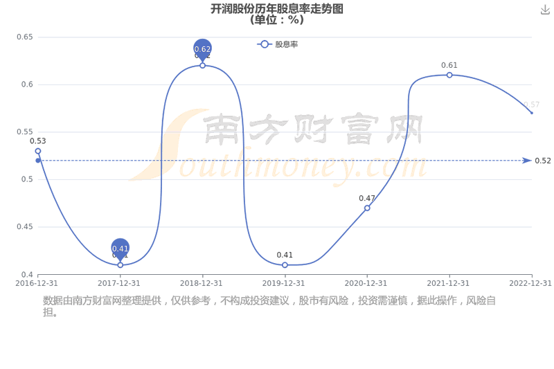 近年开润股份年度股息率走势如下图: