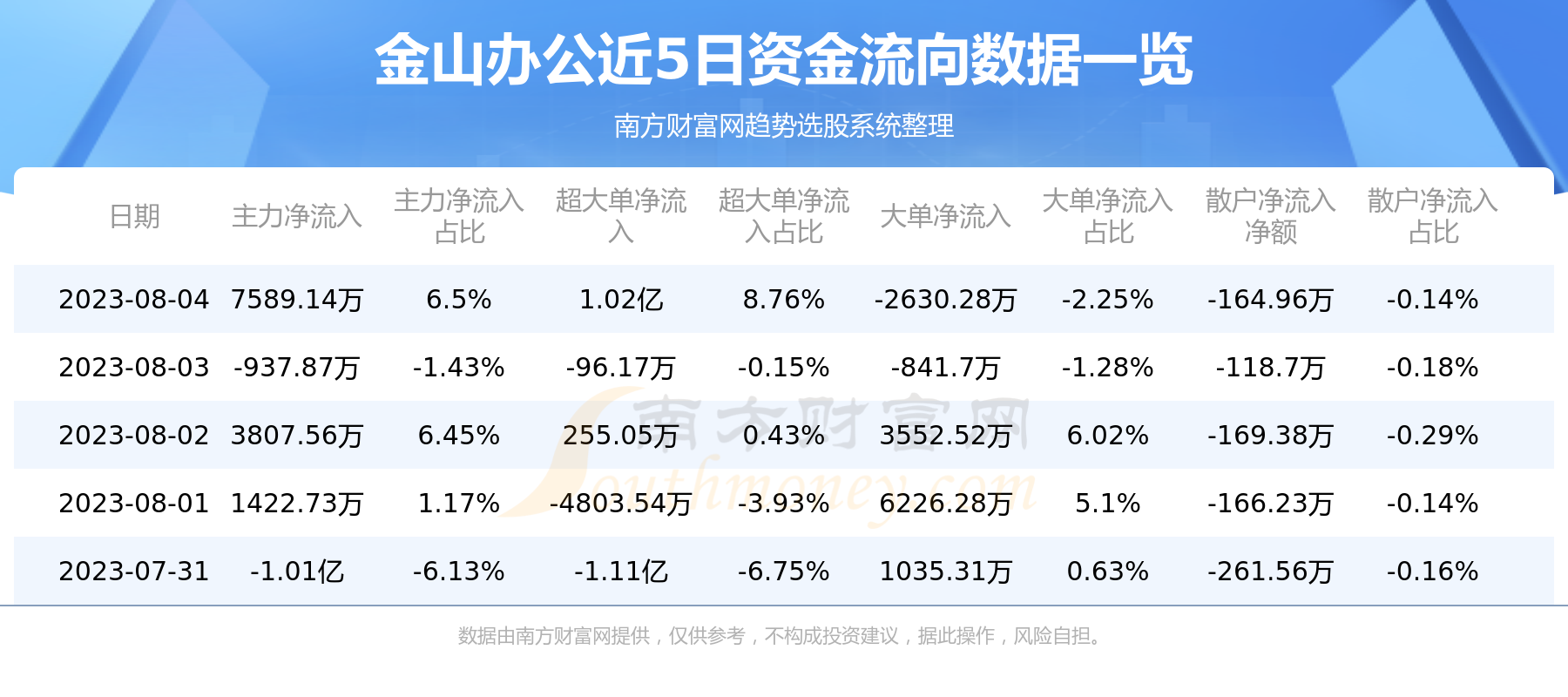 8月16日消息,金山办公8月16日主力资金净流出1.44亿元,超大单资金净流出1.68亿元,大单资金净流入2460.38万元,散户资金净流出288.15万元。