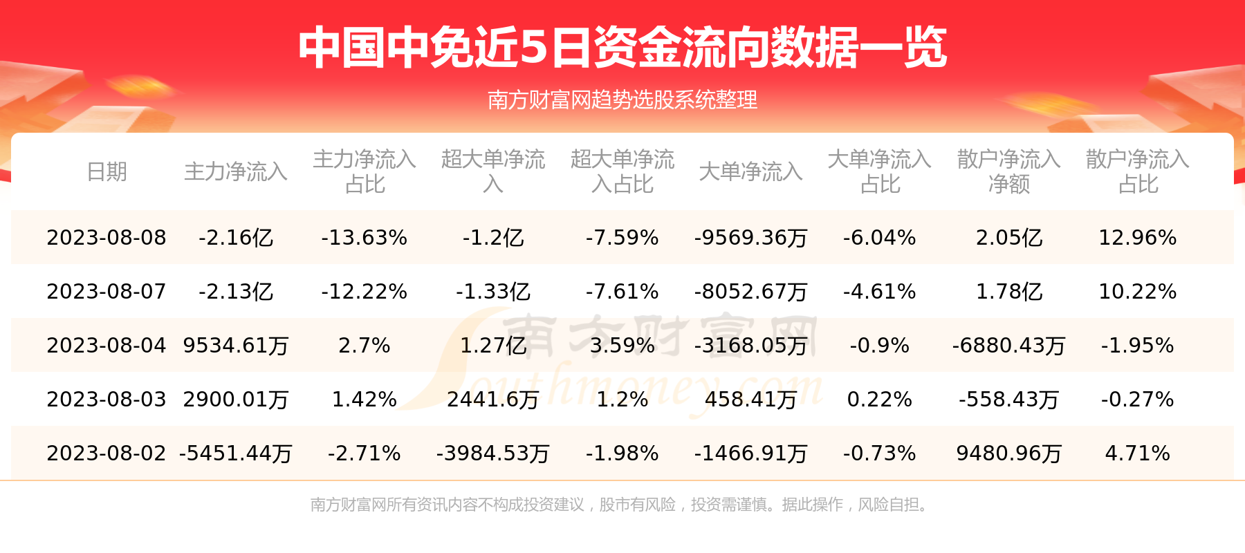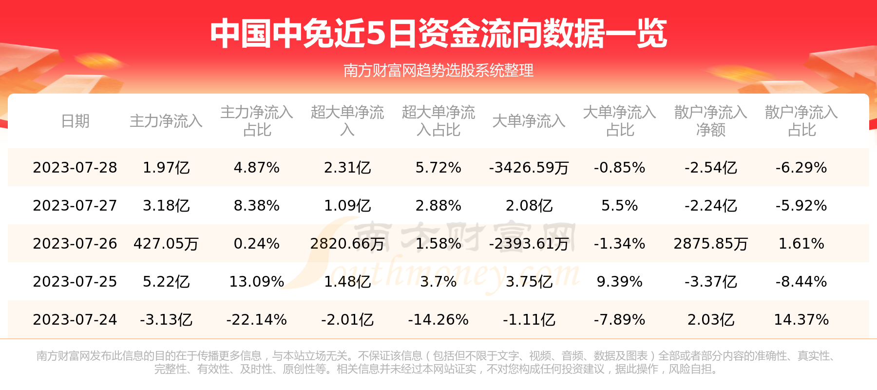 近5日资金流向一览见下表: