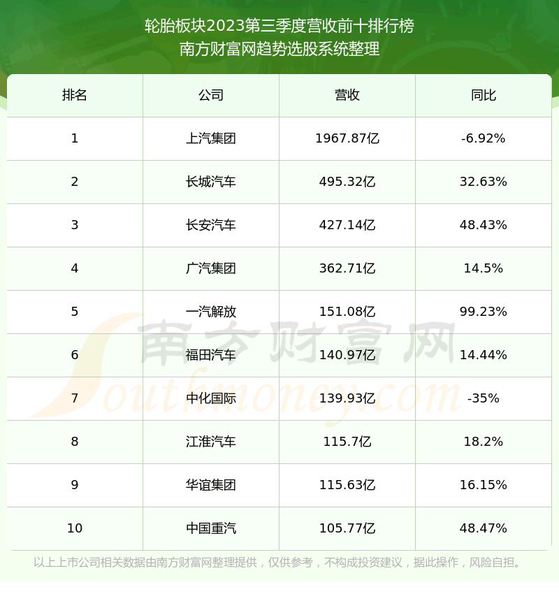 按照趋势选股系统统计,该股所属板块为橡胶制品板块,该板块共有27只股票,三角轮胎2023第二季度营收在该板块中排名为第5名,该板块2023第二季度营收排名前十的股票如下表: