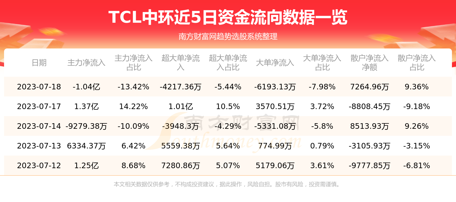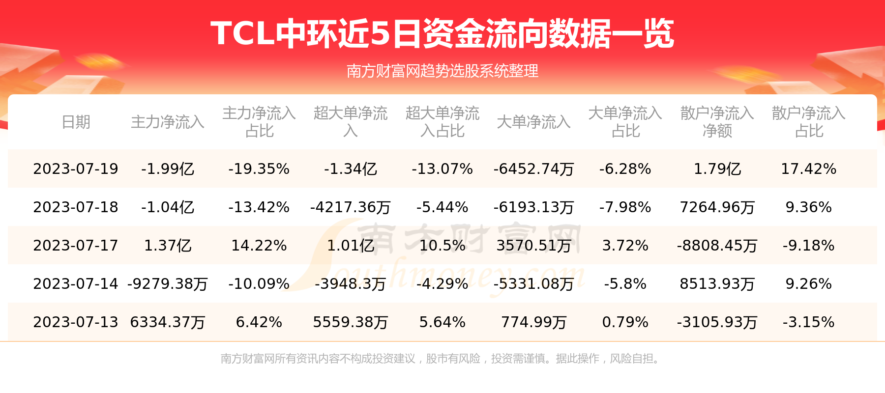 7月19日消息,TCL中环主力净流出1.99亿元,超大单净流出1.34亿元,散户净流入1.79亿元。