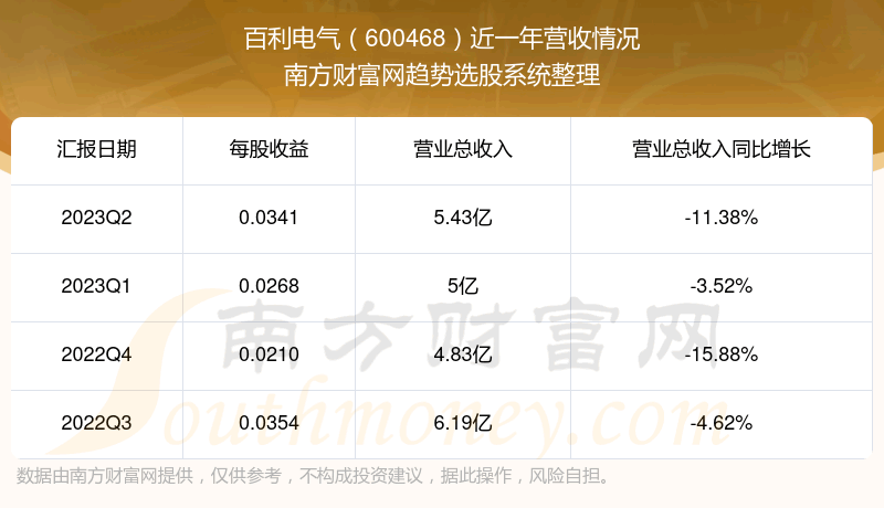 百利电气股票近一年营收情况如下表: