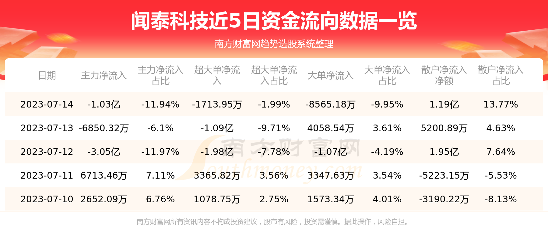 资金流向数据方面,7月14日主力资金净流流出1.03亿元,超大单资金净流出1713.95万元,大单资金净流出8565.18万元,散户资金净流入1.19亿元。