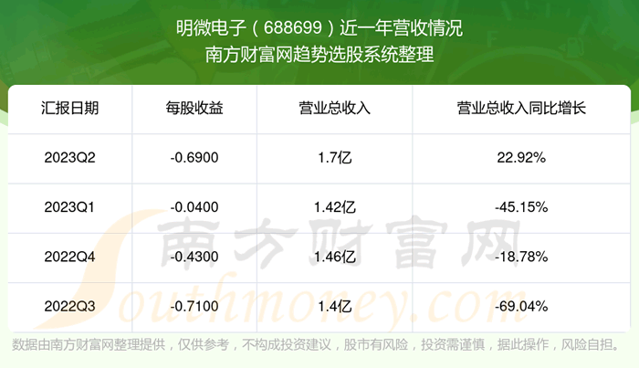 2022年明微电子公司营业总收入6.85亿,净利润为-2802.32万元。