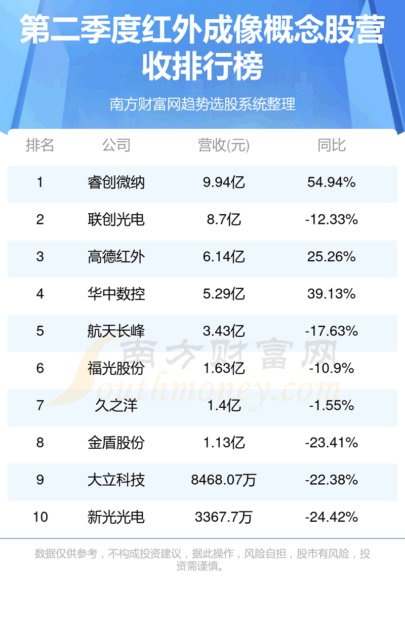 睿创微纳:2023年第二季度季报显示,睿创微纳实现营收9.94亿元,同比增长54.94%;毛利润为5.21亿元,净利润为1.54亿元。