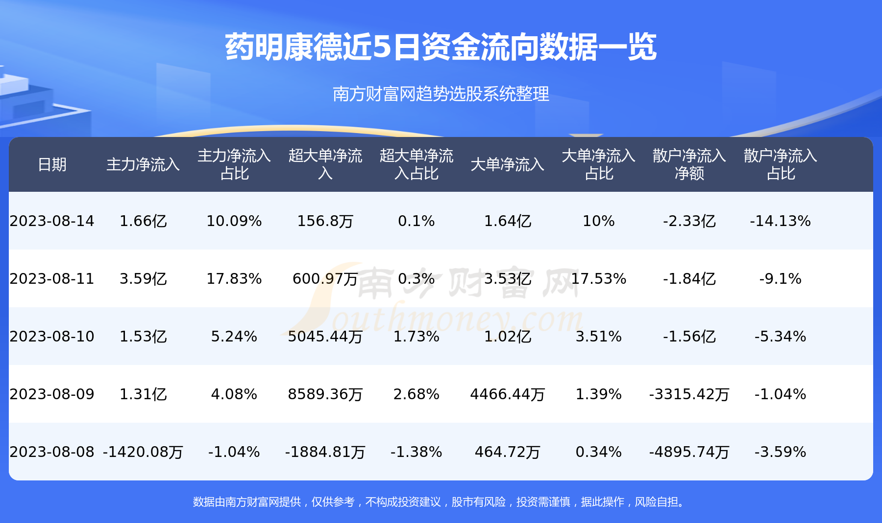 8月14日消息,药明康德资金净流入1.66亿元,超大单净流入156.8万元,换手率0.82%,成交金额16.45亿元。