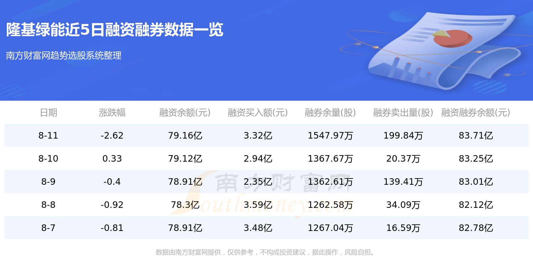 隆基绿能8月11日融券信息显示,融资方面,当日融资买入3.32亿元,融资偿还3.28亿元,融资净买额429.6万元。融券方面,融券卖出199.84万股,融券偿还19.54万股,融券余量1547.97万股,融券余额4.55亿元。融资融券余额83.71亿元。近5日融资融券数据一览见下表: