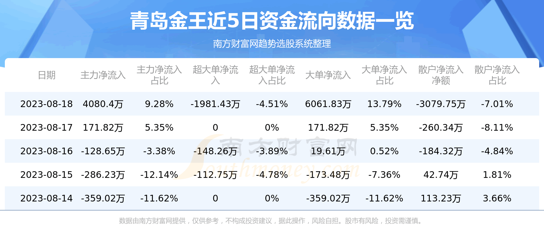 8月18日消息,青岛金王资金净流入4080.4万元,超大单资金净流出1981.43万元,换手率2.44%,成交金额6418.63万元。