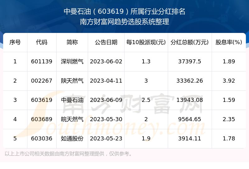 二、中曼石油603619行业分红排名