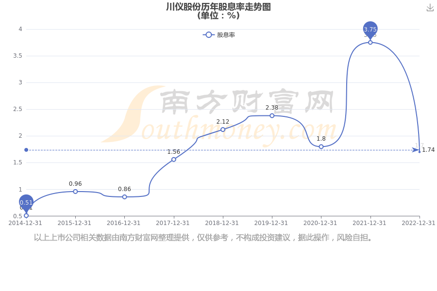 川仪股份最新一次公布的分红方案为10派6元。本次权益分派股权登记日为2023年6月14日,除权除息日为2023年6月15日,派息日为2023年6月15日。