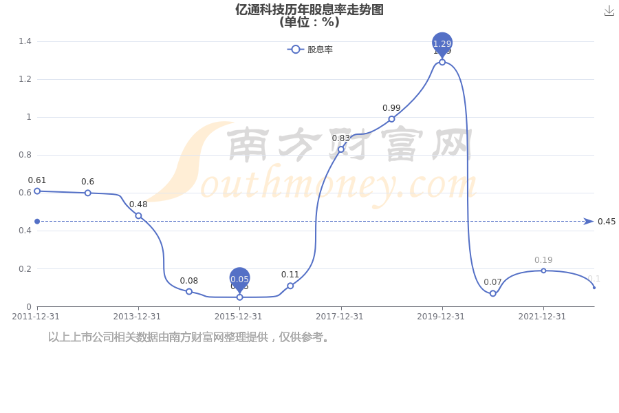 亿通科技最新一次公布的分红方案:10派0.09元。