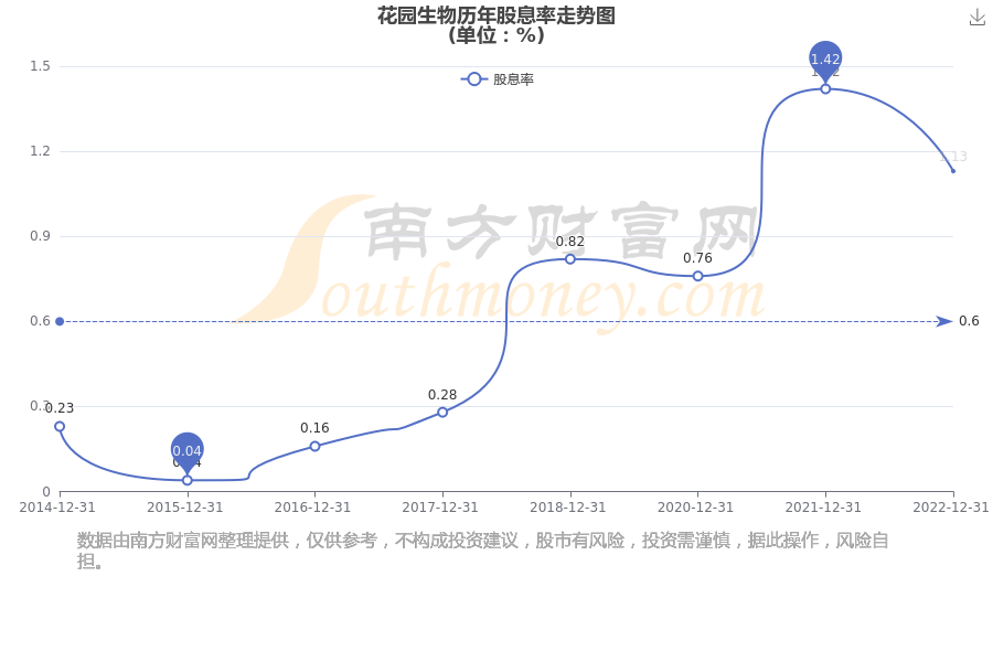 近年花园生物年度股息率走势如下图: