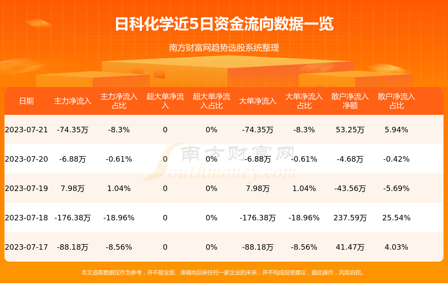 近5日资金流向一览见下表: