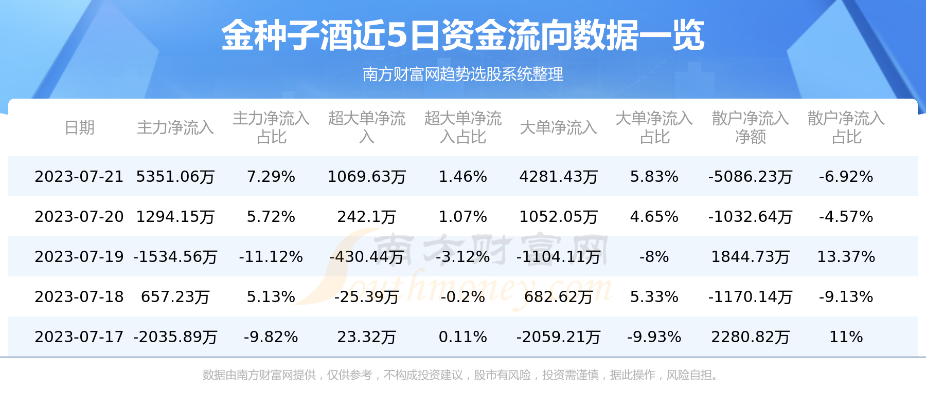 近5日资金流向一览见下表:
