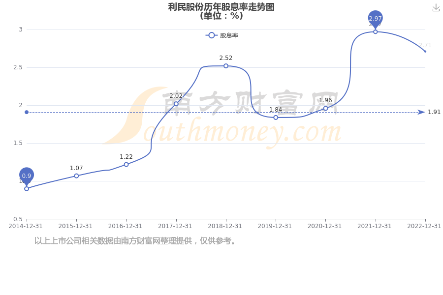 近年利民股份年度股息率走势如下图: