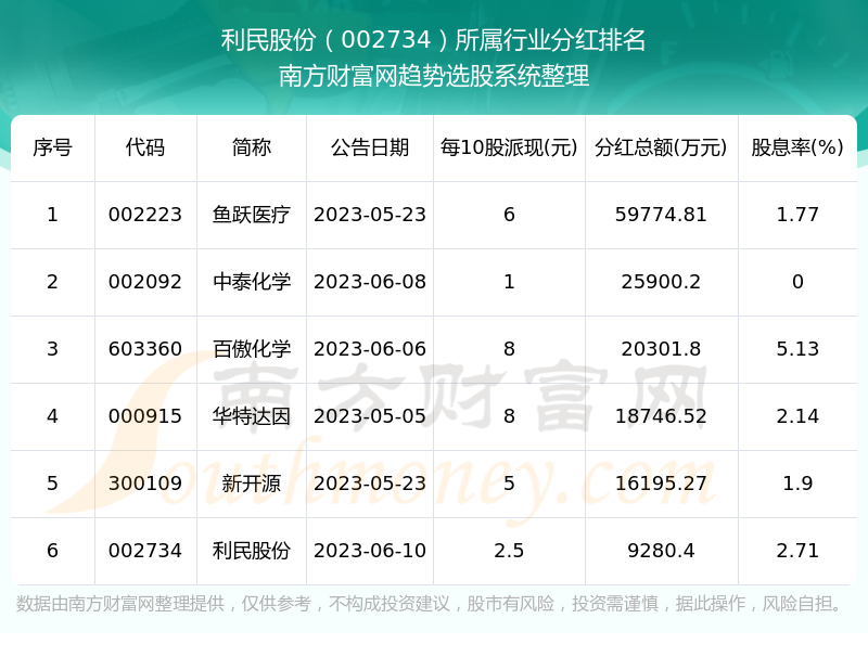 二、利民股份002734行业分红排名