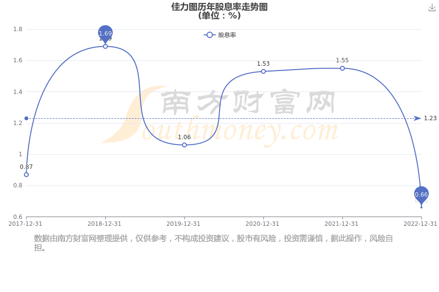 近年佳力图年度股息率走势如下图: