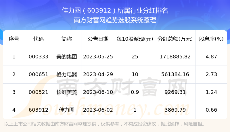 二、佳力图603912行业分红排名